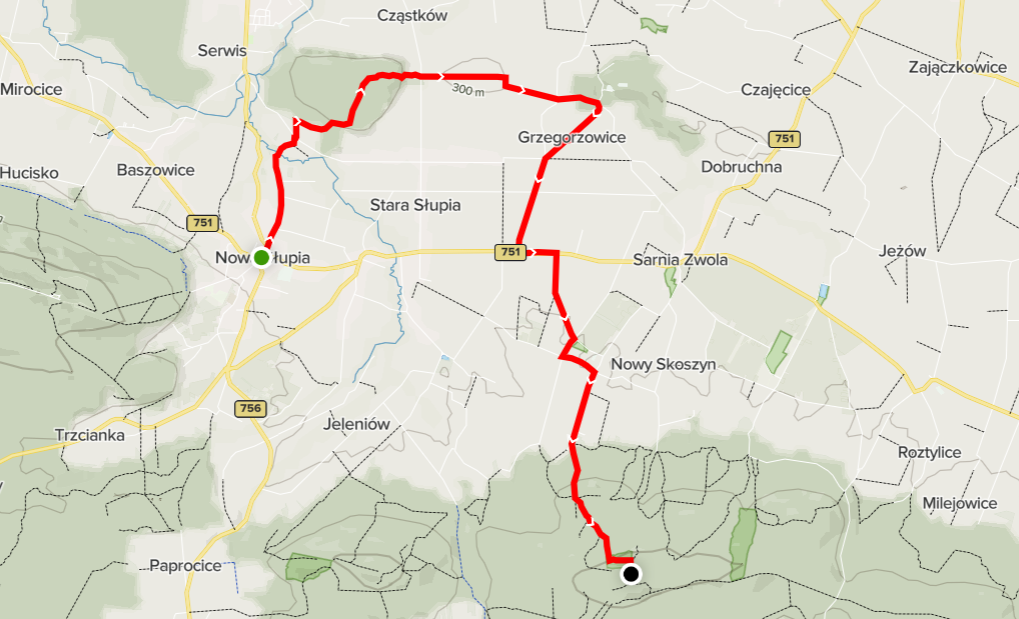 Przebieg szlaku: Nowa Słupia – Góra Chełmowa  – Pokrzywianka Górna  – Grzegorzowice – Wałsnów  – Kunin – Skoszyn  – Szczytniak (połączenie z czerwonym, głównym szlakiem...