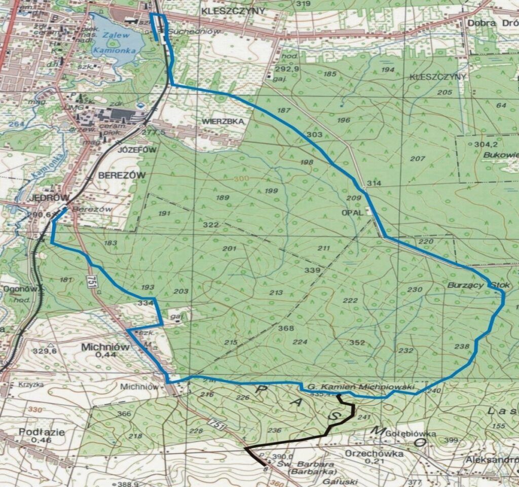 Przebieg szlaku: 0,0 km Kapliczka św. Barbary – punkt widokowy, nazwa pochodzi od kapliczki św. Barbary, wystawionej tu w XIX w przez górników. Rozciąga się stąd jeden z najpiękniejszych widoków...