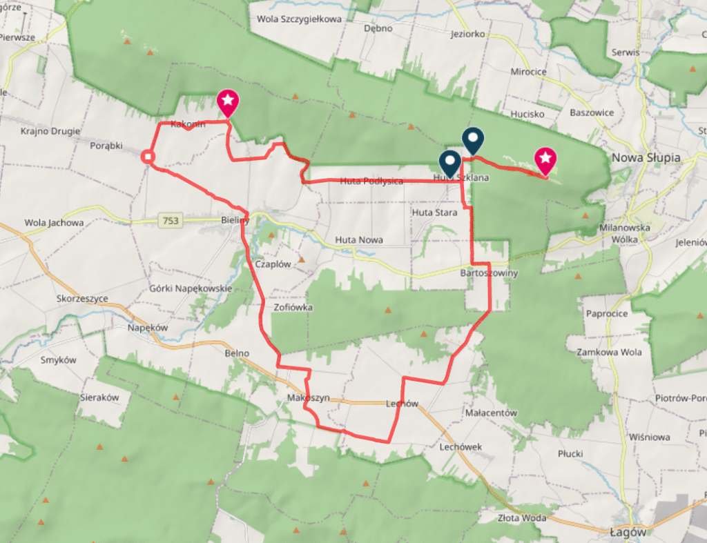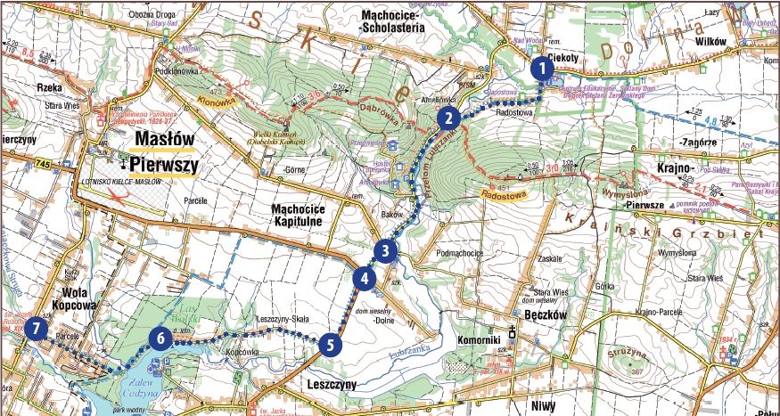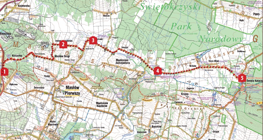 Szlak prowadzi na dłuższym odcinku wzdłuż ruchliwej drogi asfaltowej Kielce – Św. Katarzyna w związku z tym należy zachować szczególną ostrożność. Niedogodności te rekompensują wspaniałe...