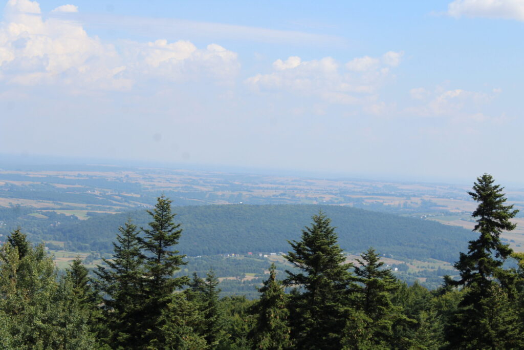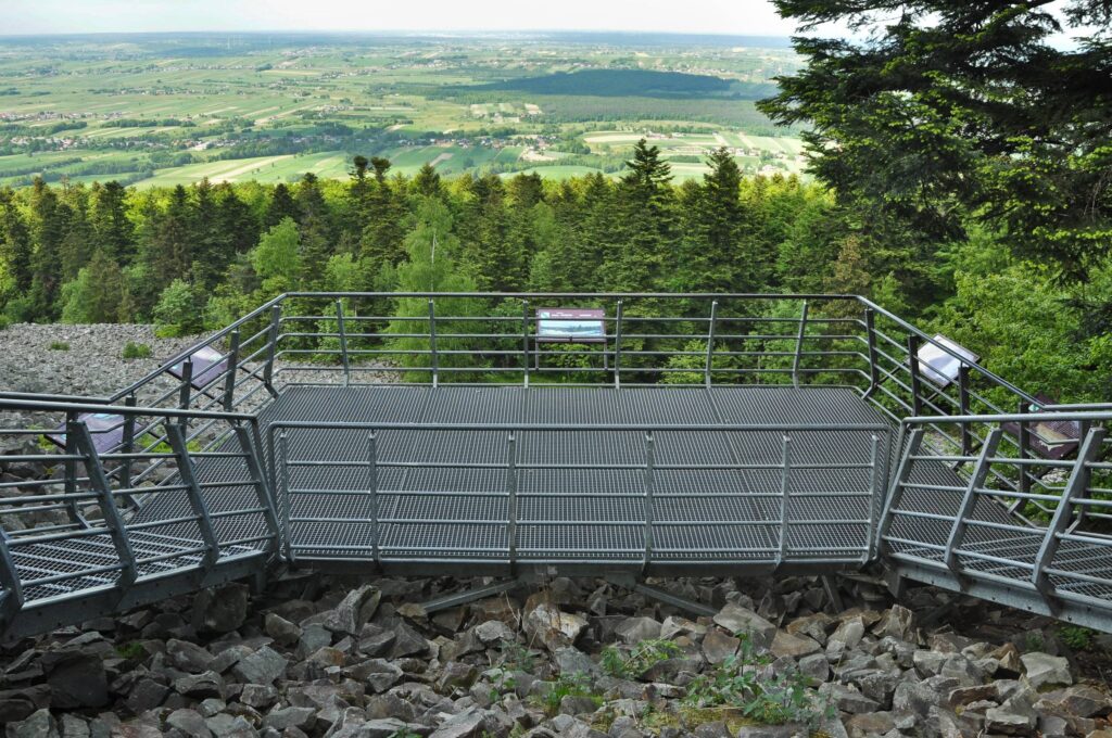 Z platformy w kierunku południowym rozciąga się piękny widok na Pasma Dymińskie, Daleszyckie i Brzechowskie. Przy sprzyjających warunkach mogą pojawić się Tatry. Na północy zaś...