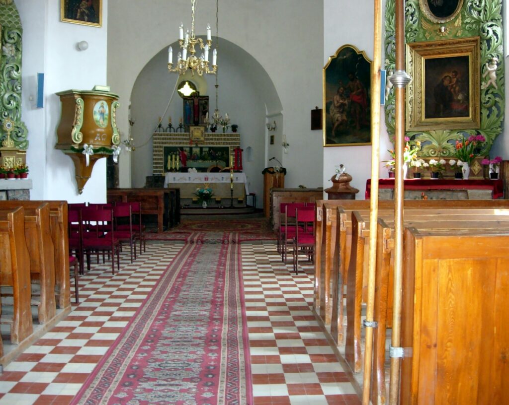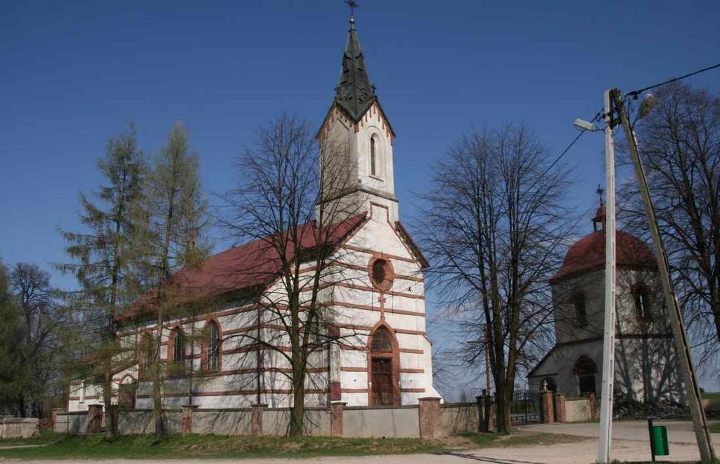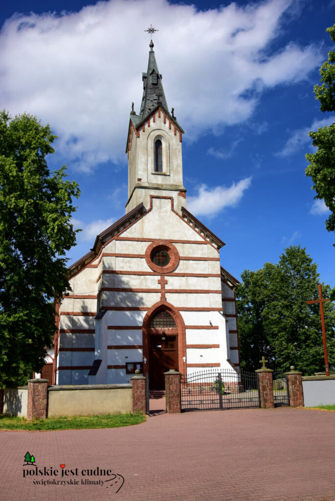 W 1871, w miejscu drewnianej kaplicy, ukończono budowę obecnego kościoła w stylu neogotyckim. Obok znajduje się ceglano-kamienna dzwonnica, wybudowana w tym samym czasie co kościół....