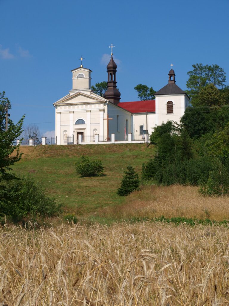 Na wyniosłym bielińskim wzgórzu, zwanym niegdyś Popówką, stoi XVII-wieczny kościół barokowy. Jest to budynek orientowany, wymurowany z kamienia i otynkowany, z dobudowanymi w 1688 r....