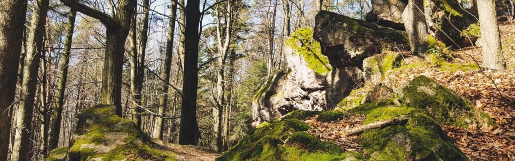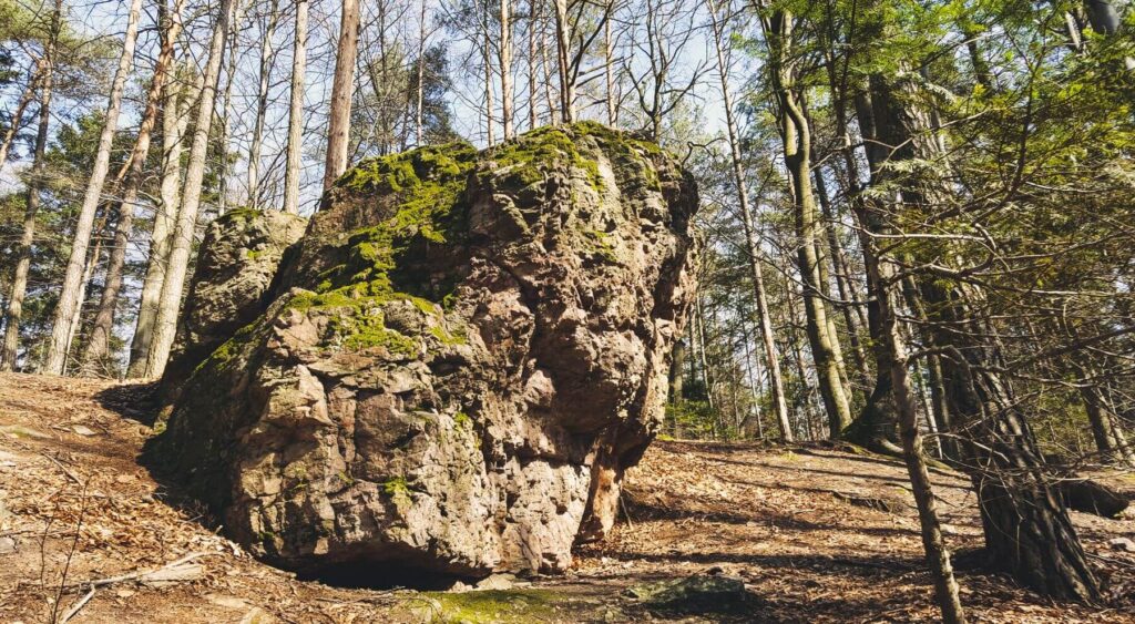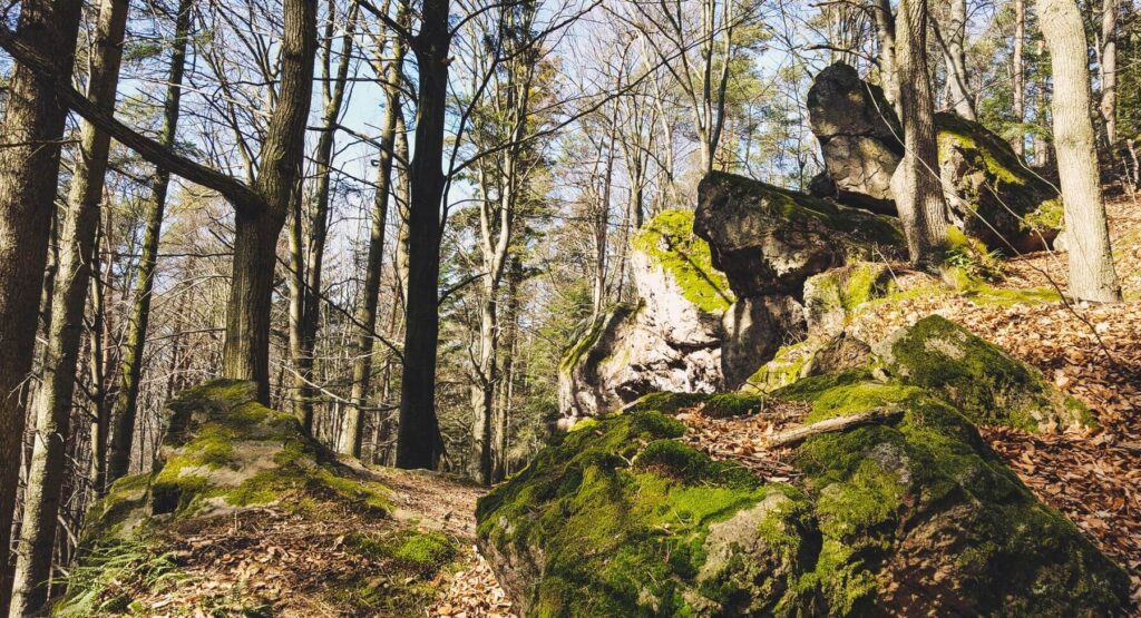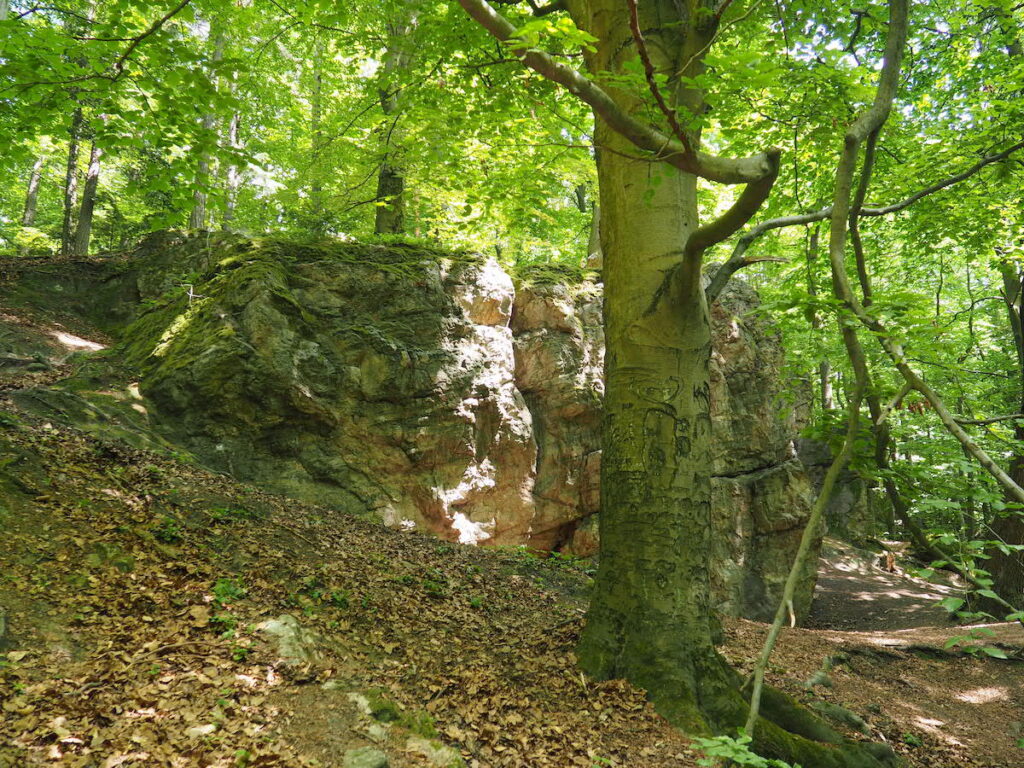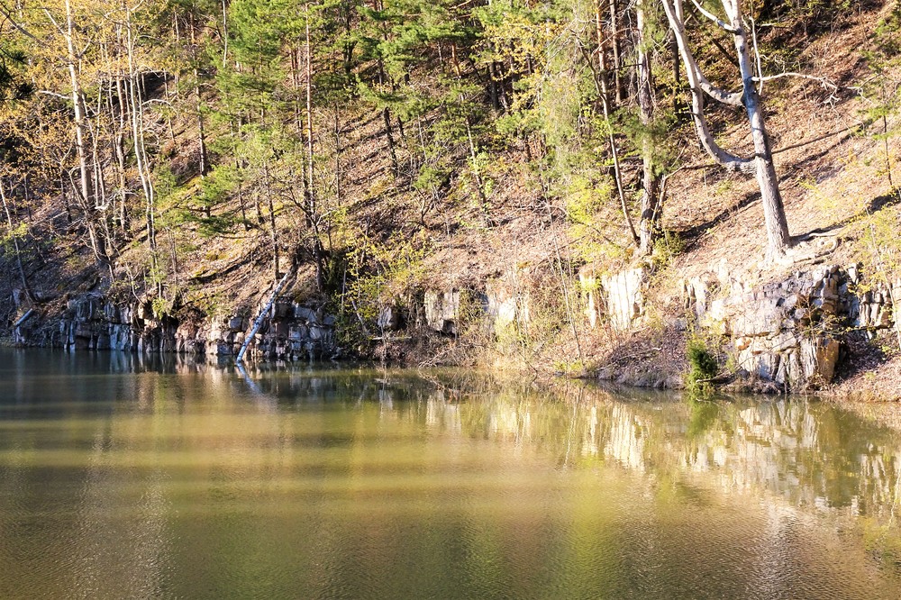 Malownicze jeziorko, powstałe w wyrobisku po kopalni piaskowców kwarcytowych, wypełnione jest zielonkawą wodą. Otaczają je strome ściany skalne i mieszany las. W niektórych miejscach jest...